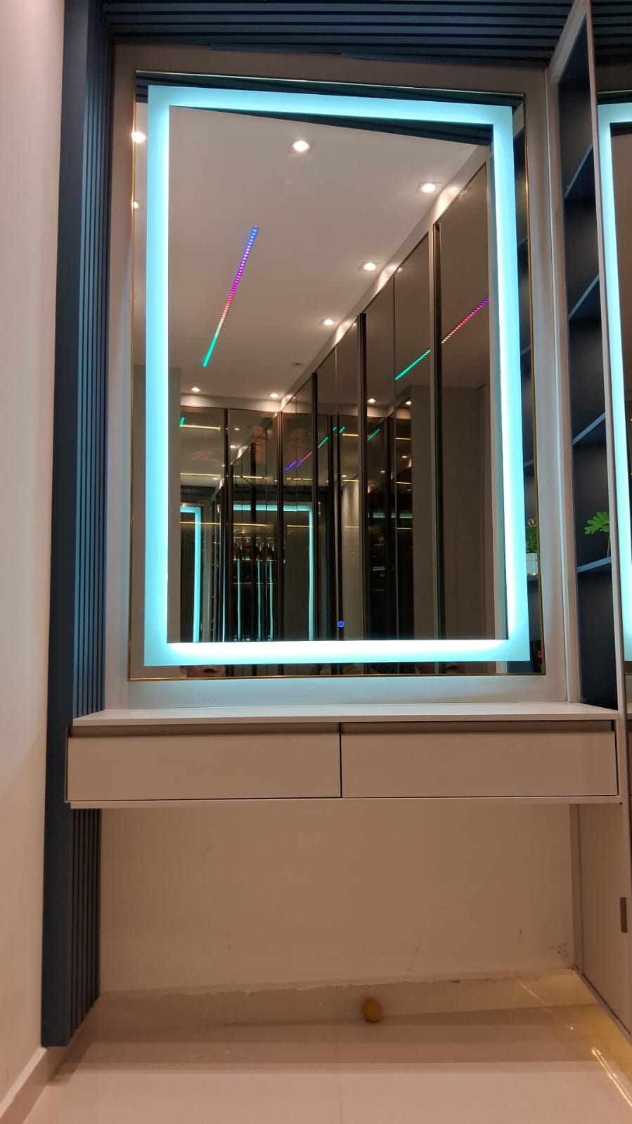 O máximo em estilo e inovação. A combinação de jateamento artístico, iluminação LED e controle touch transforma o espelho em uma peça decorativa única.